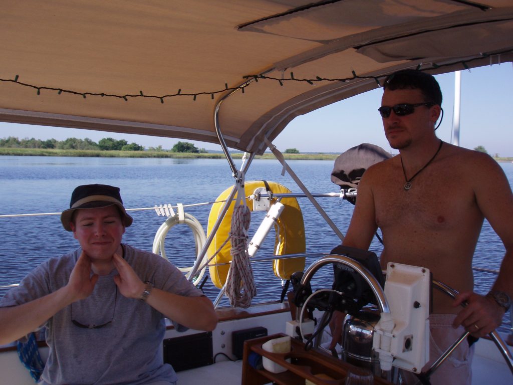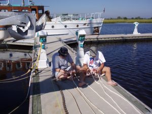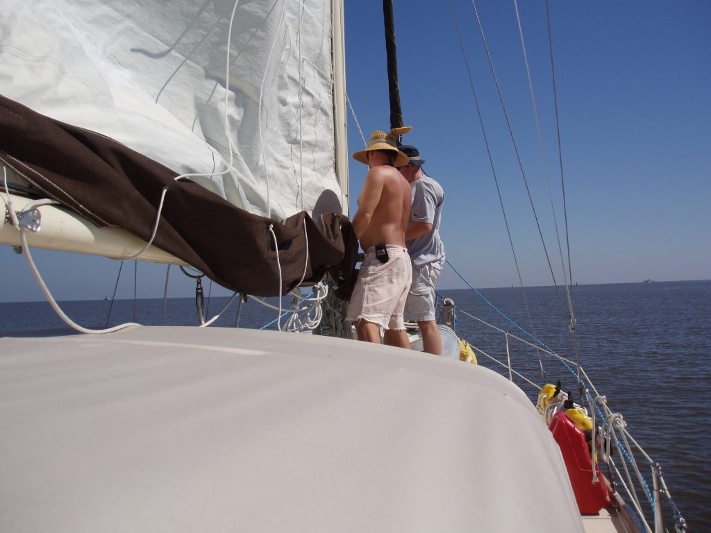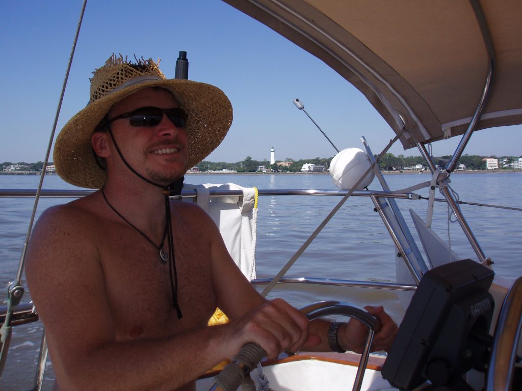 On Sunday we unhooked Lucky Peek from the dock for the first time since arriving in Brunwick and took her and Bryan out for a sail on the Atlantic. It was a beautiful day with a nice 10 knot breeze. Although we didn’t catch any fish we did see a few dolphins leaping out of the water around us. So cool.