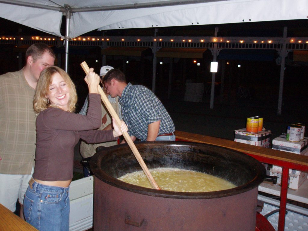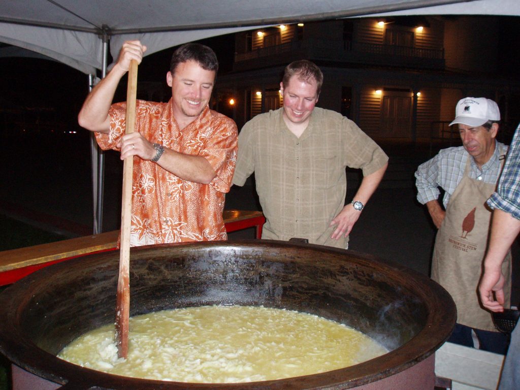 On October 14th we got our first visitor from Boise! Bryan was in Orlando and he drove up to spent the weekend with us on Lucky Peek. We had a great time and enjoyed showing Bryan the local sites in downtown Brunswick. That particular weekend happened to be the annual Brunswick Rockin’ Stewbalie at the Mary Ross Park next to our marina, so the town was abuzz with Brunswick Stew anticipation! While we didn’t take the opportunity to taste any stew at the cook-off on Saturday, we did get a chance, as we stumbled through the park in the wee hours of Saturday, to stir an 85 gallon pot of stew that was being prepared for the competition.