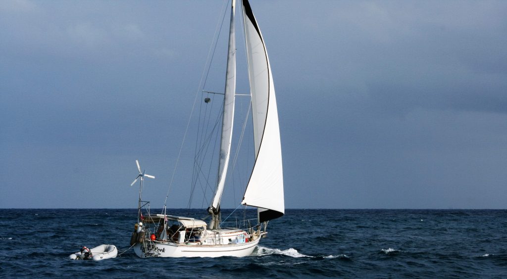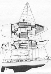The Gulfstar 37 is an aft cockpit, sloop rigged sailing vessel with a modified full keel and skeg hung rudder. Her shallow draft and wide beam combined with a long and powerful waterline allow this boat to travel to many small out of the way bays that deeper draft vessels might have to pass up. Her generous beam should contribute to initial stiffness while providing gobs of living space.